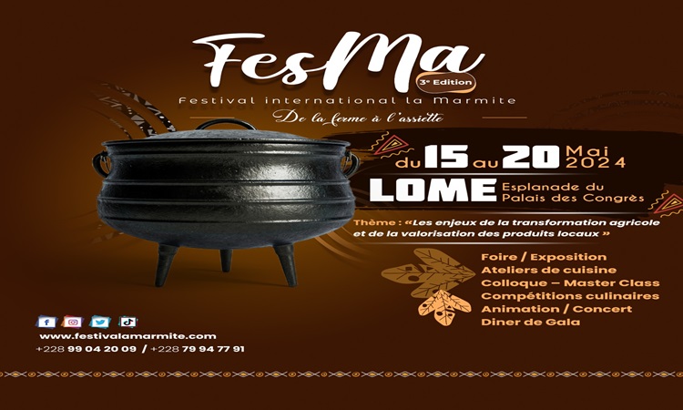 Initialement prévue pour se dérouler du 15 au 21 avril 2024 sur l’esplanade du Palais des Congrès de Lomé, la troisième édition du Festival international la Marmite (FESMA) est reportée pour cause des élections législatives et régionales du 20 avril prochain au Togo. Aux dernières nouvelles, le comité d’organisation du Festival l’a reporté sur les 15, 16, 17, 18, 19 et 20 mai de cette même année.