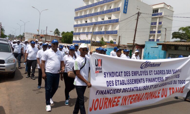 Les travailleurs du monde entier ont célébré le mercredi 1er mai 2024, la Journée du travail. Placée cette année sous le thème « Justice sociale et travail décent pour tous », cette journée a été également célébrer au Togo par plusieurs travailleurs parmi lesquels ceux des secteurs bancaire et de l’assurance dont les employés sont regroupés au sein du Syndicat national des employés et cadres des banques, des établissements financiers décentralisés et des assurances du Togo (SYNBANK-Togo).